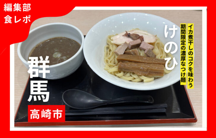 こんにちわ!編集部のI👓です。本日は高崎方面に用事がありましたので、事前にリサーチ🔍して、今、提供が始まっているという「イカ煮干しつけ麺」を味わいに、高崎市の「けのひ」さんに出かけてきました🏃。