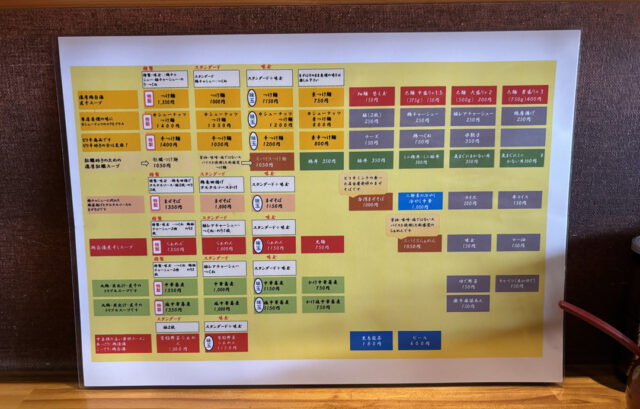 店内はL字のカウンター席のみになりますが、着丼するまで、次回頼んでみたいメニューを、卓上のPOPで予習しておくといいかも知れません。