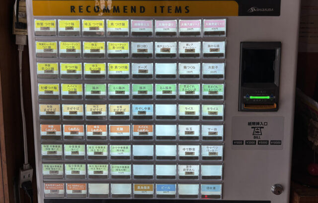 券売機で食券を買います。トッピング類やミニ丼などもあり、なかなか充実しています。