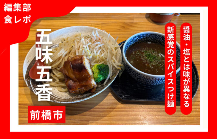 こんにちは、編集部のIです。いよいよ新年度が幕を開けました。新生活に胸を躍らせ、ドキドキワクワクの生活を送っている人も多いかと思いますが、今年度もたくさんのラーメン情報をお届けしていきたいと思っていますので、よろしくお願い致します。本日は、このラーメンWEBでもたびたび紹介しているこのお店「五味五香(前橋市)」さんです。こちらのお店のメニューはだいたい食べてきたと思っているのですが、未食のメニュー「スパイスつけ麺」があったことに気がつきました。本当は、大好きな「辛つけ麺」の食券を買っていたのですが、このメニューに差し替えてもらいました。