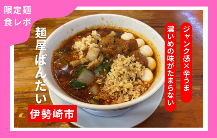 こんにちわ!編集部のI👓です。ラーメンが恋しい季節に、辛うまな限定麺を食べに「麺屋ばんだい」(伊勢崎市)に行ってきました🏃。本当は味噌らぁめんを食べるつもりでいたのですが、限定の2文字と、「ジャンクなスタミナらぁめん」と絶対おいしいであろう、メニューにひかれて、浮気をしてしまったのは内緒です😅(笑)